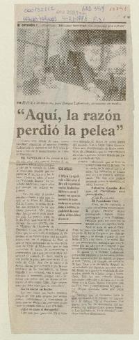 "Aquí, la razón perdió la pelea" [artículo]. Las Últimas Noticias (Diario : Santiago, Chile)-- jul. 4, 1996, p. 31 retr. .
