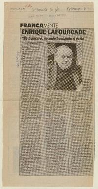 Enrique Lafourcade, "No transaré, no ando buscando el éxito" [artículo] / Ana María Rivas. La Tercera. -- jul. 6, 1990, p. 3 (suplemento) retr. .