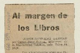 Al margen de los libros [artículo] / Alberto Arraño. El Heraldo (Diario : Linares, Chile)-- oct. 17, 1972, p. 3. .