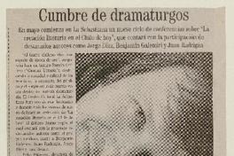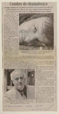 Cumbre de dramaturgos [artículo] El Mercurio de Valparaíso abr. 24, 2002, p. C9 retr. .