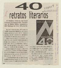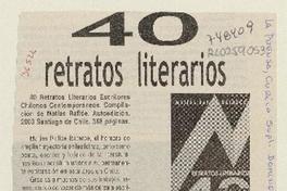 40 retratos literarios. [artículo] La Prensa (Diario : Curicó, Chile)-- dic. 14, 2003, p. 3 (suplemento "Domingo en Familia"). il. .