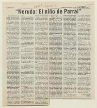 Neruda: El niño de Parral" [artículo] / Arturo Castro Salgado. La Prensa (Diario : Curicó, Chile)-- nov. 29, 2003, p. 17. .