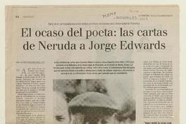 El ocaso del poeta: las cartas de Neruda a Jorge Edwards [artículo] / Pamela Gutiérrez. La Tercera (Diario : Santiago, Chile)-- sept. 21, 2003, p. 14-15. retr. .