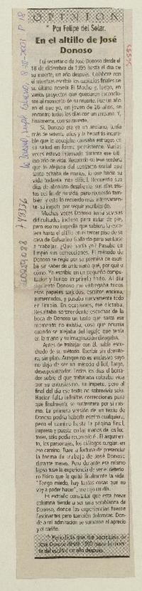 En el altillo de José Donoso. [artículo] La Tercera (Diario : Santiago, Chile)-- mar. 8, 2001, p. 18. .