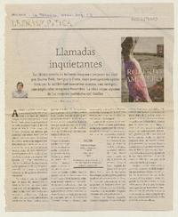 Llamadas inquietantes [artículo]/ Juan Manuel Vial Sanfuentes. La Tercera (Diario: Santiago, Chile) oct. 21, 2006, p. 13 .