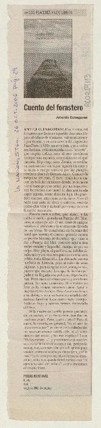 Cuento del forastero [artículo]/ Artemio Echegoyen. La Nación (Diario: Santiago, Chile) oct. 26, 2006, p. 29 .
