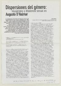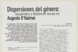 Dispersiones del género, hispanismo y disidencia sexual en Augusto D'Halmar [artículo] Sylvia Molloy Revista de Crítica Cultural (Santiago) no. 25 (nov. 2002) p. 44-48 .