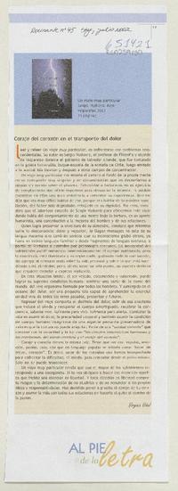 Coraje del corazón en el transporte del dolor [artículo] Virginia Vidal Rocinante (Santiago) no. 45 (jul. 2002) p. 17 il. .