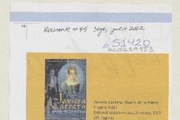 Vida y pasión de doña Javiera [artículo] Ramiro Rivas Rocinante (Santiago) no. 45 (jul. 2002) p. 16 il. .