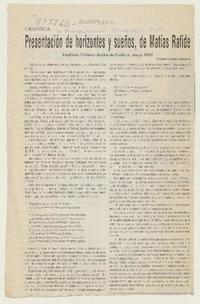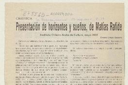 Presentación de horizontes y sueños, de Matías Rafide [artículo] Ernesto Livacic Gazzano.