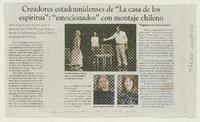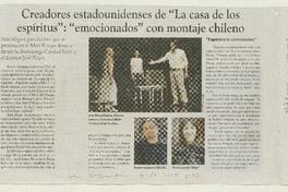 Creadores estadounidenses de "La casa de los espíritus": "emocionados" con montaje chileno [artículo]. La Segunda (Diario : Santiago, Chile)-- jun. 7, 2010, p. 43. .