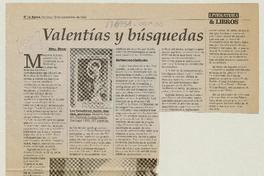 Valentías y búsquedas [artículo] / Neda Brkic. La Epoca. -- sept. 19, 1993, p. 6 (suplemento) il. .