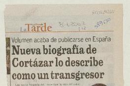 Nueva biografía de Cortázar lo describe como un transgresor [artículo] La Hora de la tarde ene. 8, 2002, p. 12 retr. .
