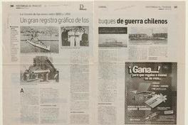 Un gran registro gráfico de los buques de guerra chilenos [artículo] / Alfredo Larreta Lavín. El Mercurio (Diario : Valparaíso, Chile)-- mayo 29, 2011, p. 16-17 (Suplemento "Domingo") .