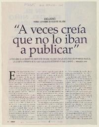 "A veces creía que no lo iban a publicar" [entrevista] [artículo] / Patricio Jara. El Mercurio (Diario : Santiago, Chile)-- ago. 5, 2006, p. 36-39 (suplemento "El Sábado") .