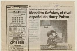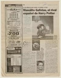Manolito Gafotas, el rival español de Harry Potter [artículo] Sebastián Vásquez R. La Tercera ene. 21, 2002, p. 34 il. .