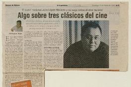 El autor nacional Julio López Navarro y su saga sobre el cine mundial : algo sobre tres clásicos del cine [artículo] / Wellington Rojas. Diario Renacer (Malleco, Chile)-- ene. 23, 2005, p. A15. .