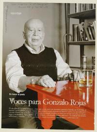 Voces para Gonzalo Rojas [artículo] / María José Pescador D. Tell Magazine (revista : Concepción, Chile)-- no. 38 (jun. 2011) p. 30-32 y 34. .