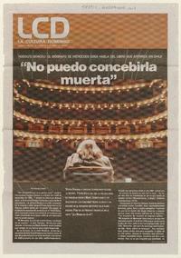 "No puedo concebirla muerta" (entrevista) [artículo] / Gabriela García. La Nación Domingo (Diario : Santiago, Chile)-- jun. 27, 2010, p. 45-47 (suplemento "La cultura domingo") .