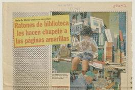 Ratones de biblioteca les hacen chupete a las páginas amarillas Feria del Libro Usado es un golazo [artículo] : La Cuarta (Diario : Santiago, Chile)-- feb. 19, 1995, p. 28. retr. .