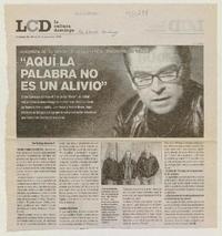 "Aquí la palabra no es un alivio" (entrevista) [artículo]/ Rodrigo Alvarado E. La Nación (Diario: Santiago, Chile) mayo 18 al 24, 2008 .