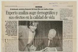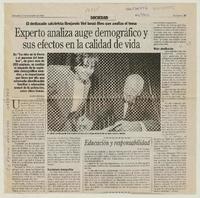 Experto analiza auge demográfico y sus efectos en la calidad de vida [artículo] / Marta Molina. La Epoca. -- nov. 23, 1996, p. 27 La Epoca. -- dic. 11, 1996, p. 27 retr. .