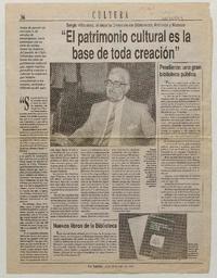 "El Patrimonio cultural es la base de toda creación" [artículo]. La Nación. -- jul. 26, 1993, p. 36 retr. .
