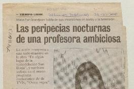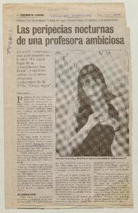 Las peripecias nocturnas de una profesora ambiciosa [artículo] / Marietta Santi. Las Últimas Noticias (Diario : Santiago, Chile)-- nov. 25, 2000, p. 44. fot. .
