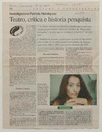 Teatro, crítica e historia penquista : [entrevista] [artículo] El Sur (Diario : Concepción, Chile)-- mar. 19, 2003, p. 10. retr. .