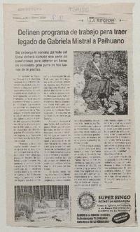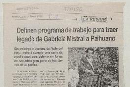 Definen programa de trabajo para traer legado de Gabriela Mistral a Paihuano [artículo]. La Región (Coquimbo, Chile) ene. 30, 2008, p. 11 .