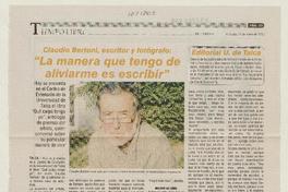 "La manera que tengo de aliviarme es escribir" [artículo] / Macarena Muñoz. El Centro (Diario : Talca, Chile)-- mar. 14, 2012, p. 23. .