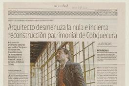 Arquitecto desmenuza la nula e incierta reconstrucción patrimonial de Cobquecura [artículo] Patricia Orellana Cea.