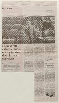 Egon Wolff estrena nueva obra y tendrá dos piezas en cartelera [artículo] / Jorge Letelier. La Tercera (Diario: Santiago, Chile)-- jul. 5, 2011, p. 36. .