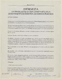 La fragilidad es una constante en la zigzagueante biografía de Hernán Miranda [artículo] Mario Rodríguez Postdata no. 1 y 2 (primer y segundo semestre 1998) p. 146-149 .