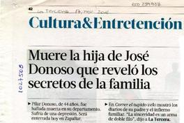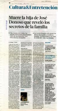 Muere la hija de José Donoso que reveló los secretos de la familia [artículo] R. Careaga <y> J. García.