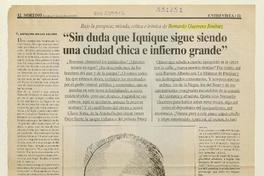 "Sin duda que Iquique sigue siendo una ciudad chica e infierno grande" [artículo] Anyelina Rojas Valdés El Nortino oct. 1, 2000, p. 11-13 retr. .
