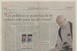 Jorge Edwards : "Los políticos se acuerdan de la cultura sólo para las elecciones" [artículo] Carolina Adonie Dracos.
