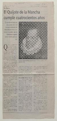 Un Clásico : el Quijote de la Mancha cumple cuatrocientos años [artículo]. El Ovallino (Diario: Ovalle, Chile)-- febr. 21, 2005, p. 6. .