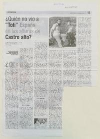 ¿Quién no vio a "Toti" España en las alturas de Castro alto? [artículo] / Carlos Trujillo. El Insular (Diario : Chiloé, Chile)-- ago. 3, 2011, p. 15. .