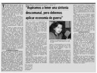 Aspiramos a tener una sintonía descomunal, pero debemos aplicar economía de guerra". [artículo] La Tercera (Santiago, Chile)-- sept. 18, 1983, p. 42. retr. .