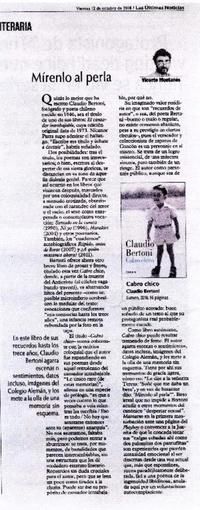 Mírenlo al perla [artículo] / Vicente Montañés. Las Últimas Noticias (Diario : Santiago, Chile)-- Octubre 12, 2018, página 70. 1 página : ilustraciones en blanco y negro. .
