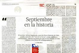 Septiembre en la historia [artículo] / Pablo Marín. La Tercera (Diario : Santiago, Chile)-- Septiembre 18, 2018, página 25. 1 página : ilustración en color. .