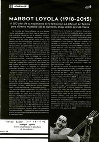 Margot Loyola (1918-2015) [artículo]. Aurora Boreal (Revista : Santiago, Chile)-- Octubre [2018?] número 28, página 49. 1 página : ilustraciones en blanco y negro .
