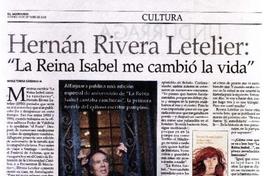 Hernán Rivera Letelier "la reina Isabel me cambió la vida" [entrevista] [artículo] : María Teresa Cárdenas M.