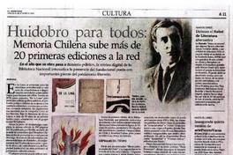 Huidobro para todos memoria chilena sube más de 20 primeras ediciones a la red [artículo] : Iñigo Díaz.