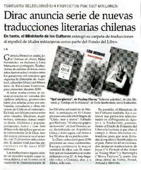 Dirac anuncia serie de nuevas traducciones literarias chilenas [artículo] I.D.