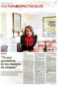 "No soy partidaria de los museos de empate" [entrevista] / [artículo] : Pablo Marín; foto Andrés Pérez. La Tercera (Diario : Santiago, Chile)-- sept. 1, 2018, p. 73-74. 2 páginas : ilustración en color. .