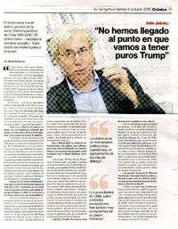 "No hemos llegado al punto en que vamos a tener puros Trump" [entrevista] / [artículo] : Martín Romero E. La Segunda (Diario : Santiago, Chile)-- oct. 5, 2018, p. 19. 1 página : ilustración en color. .