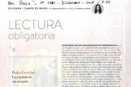 Lectura obligatoria el episodio de los adolescentes de Independencia / [artículo] : Carolina Pulido. Paula (Revista : Santiago, Chile)-- no. 1281 (Diciembre 2018), p. 20. 1 página : ilustración en color. .