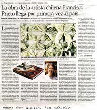 La obra de la artista chilena Francisca Prieto llega por primera vez al país [artículo] María Piedad Jiménez Larraín.